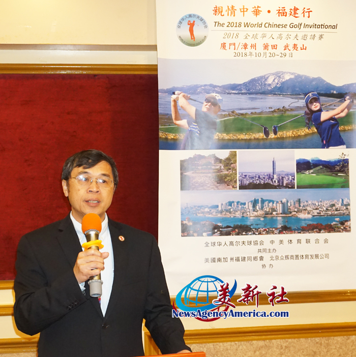 全球华人高尔夫协会主席江启洸介绍说,2018年的比赛,仍将邀请全球各地的华人高尔夫球协会会长及会员们参与,参加人数约200人;今年特邀洛杉矶福建籍侨领黄惠珍女士担任荣誉主席,主场设在厦门;并有美国南加州福建同乡会和北京众辉商置体育发展公司协办,希望能促进福建省与海外华人的高尔夫体育交流。