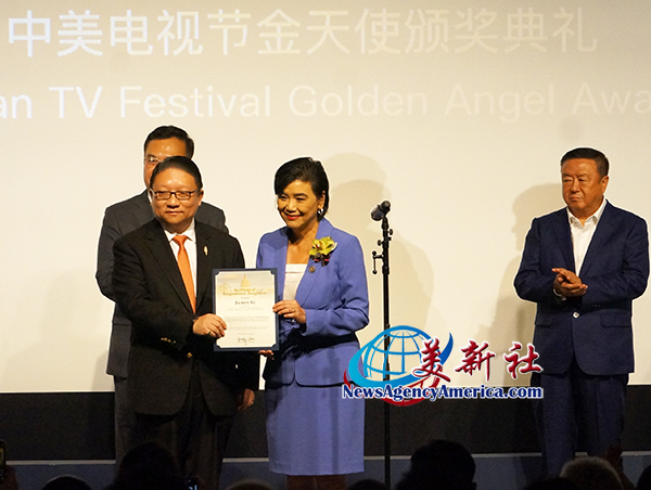 【美新社刘骁宗洛杉矶报导】由美国鹰龙传媒有限公司主办的2018中美电视节“金天使奖”颁奖典礼于10月29日在美国编剧协会剧院隆重开幕。