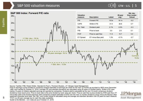 1. 美國股市並不貴,目前標普500的估值水平爲15.5倍,低於過去25年曆史平均的16.1倍。目前標普500的PB爲3倍,也稍稍高於過去25年曆史平均的2.9倍。