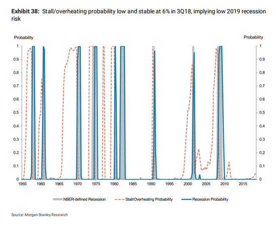 摩根士丹利稱,若單看上述模型,明年迎來經濟衰退的可能性僅有10%甚至更低。但該投行所評估的結果稍高,主要是考慮到緊張局勢升級風險,以及企業槓桿過高可能導致金融體系脆弱。