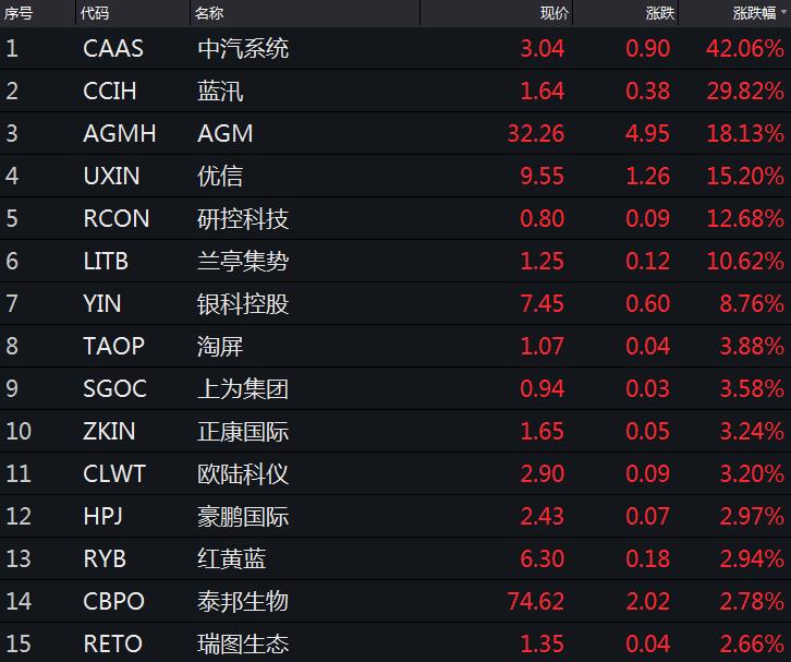 此外,中概股亦多數收跌。阿里巴巴跌2.61%,京東跌4.13%,百度跌3.06%;微博跌7.01%,新浪跌5.73%,趣店跌5.58%,愛奇藝跌4.47%,蔚來汽車跌3.36%,拼多多跌2.96%。優信漲15.2%,蘭亭集勢漲10.62%,紅黃藍漲2.94%。