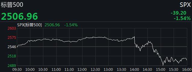 截至收盤,標普500指數收跌39.20點,跌幅1.54%,報2506.96點。道瓊斯工業平均指數收跌351.98點,跌幅1.49%,報23323.66點,創2017年11月份以來收盤新低。納斯達克綜合指數收跌147.08點,跌幅2.17%,報6636.83點。