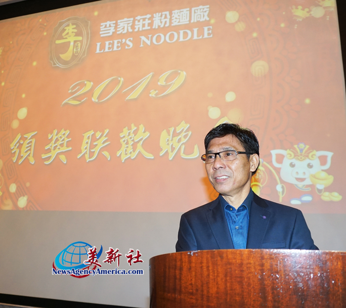 李家莊董事長李志鴻表示,李家莊粉麵廠每一年新年前都會與員工和家屬及客人們聚會,藉歡度新年的同時,感恩員工們的辛勞付出,也聯誼感情,相互交流。今年特別捐款給華埠服務中心和洛杉磯兒童醫院,希望藉此機會回饋社區,為社會多盡一份力量。