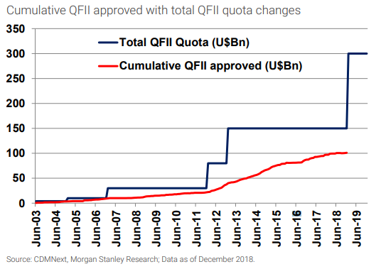 但摩根士丹利也認爲,通過 QFII 計劃流入的資金不會立即達到3000億美元的額度限制。