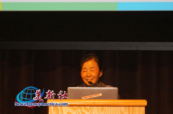 据介绍,本次大赛,邀请了美国教育、科技专业人士和名流作为评委。他/她们是Ms. Anita Brynolf,美国肯恩大学人文艺术学院院长Jonathan Mercantini博士,作家、演说家Linda Anger,美国加州康考迪亚大学尔湾分校商学院院长Stephen D. Christensen,美国STEAM教育专家Gordon Stein,IYATC 评委代表 Anita Brynolf(上图)作了致辞。