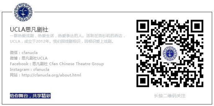 一群热爱戏剧,热爱生活,热爱表达的人。活跃在洛杉矶的西边,UCLA,成立于2012年。我们因戏剧相识,因相识爱上戏剧。