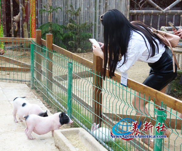 一名参观者正在看有机科普馆里的小兔子,这里也是周末和假日,家长们带小朋友来的好地方,不仅可以游览山水,呼吸新鲜空气,而且也可以让小朋友们与小动物们零距离接触,增强小朋友们的知识及爱心。