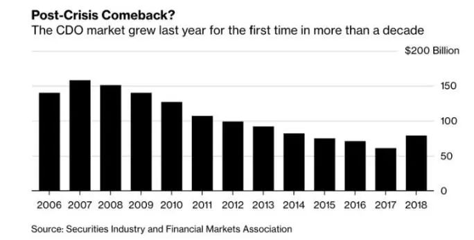 CDO是指包含不同類型債務資產(如抵押貸款支持證券和企業債券)的證券,CDO會按照不同的風險水平進行切分,然後出售給投資者。由於美聯儲承諾維持低利率,投資者(如養老基金)正在再次推動對這些結構性證券的需求,它們雖然風險較高,但回報率高於更安全的國債和投資級別企業債。