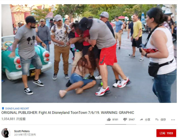 【美新社洛杉磯訊】被稱為“世界上最快樂的地方”,迪士尼樂園本該充滿了歡聲和笑語。但在7月6日傍晚時分,洛杉磯迪士尼樂園的動畫城(Toon Town)內卻發生一起觸目驚心的鬥毆事件,同時現場充滿污言穢語,路人紛紛側目。