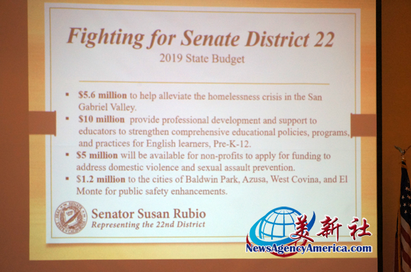 加州參議員蘇珊·盧比奧(Susan Rubio)介紹說,當選參議員後,與聖蓋博谷公共事務聯盟,聖蓋博谷地區商會,以及地方民選官員、商業和社區領袖分享州立法資訊非常重要。