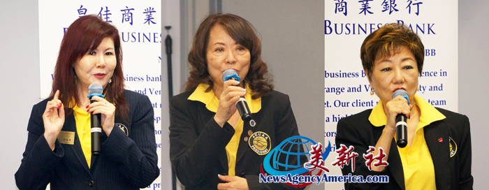 (左起)南加州中國大專院校聯合校友會前會長劉煥君、張元松、孫華翊致詞表示支持