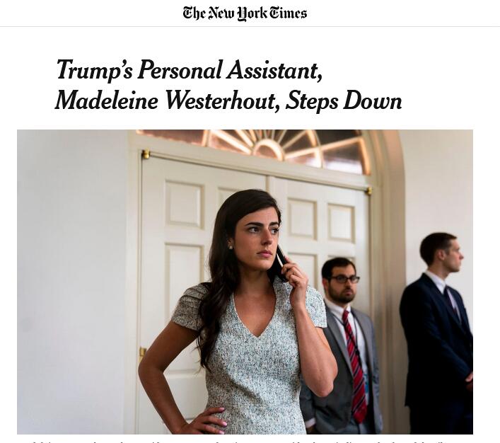 【環球網快訊】據《紐約時報》剛剛消息,兩名知情人士透露,川普的私人助理馬德萊娜·韋斯特豪特(Madeleine Westerhout)於當地時間8月29日辭職。