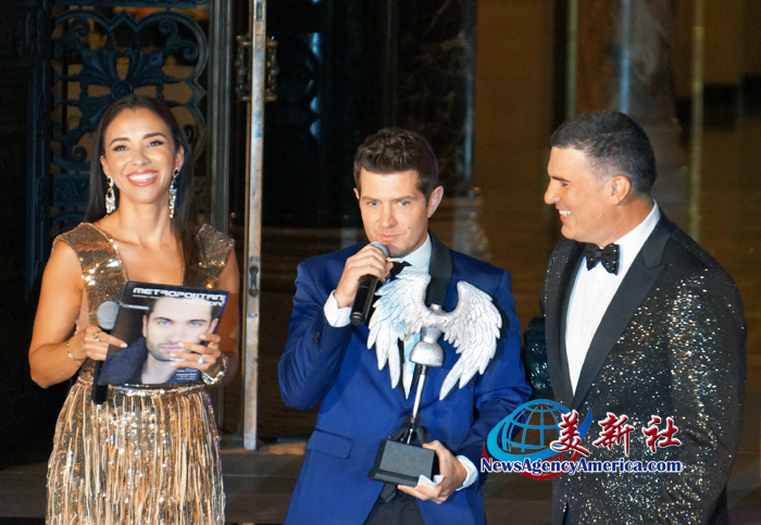 當晚司儀由Fox新聞的著名主持人Christine Devine(中),與大都會時尚週創辦人及主席愛德華多•卡瓦姆(右二)共同擔任。大都會時尚週創辦人及主席愛德華多•卡瓦姆(右二)與 總出品人保罗·贾拉米洛(左一)、主要團隊成員Amy Yamada(右一)、Niveen Heaton(左二)等共同接受賀狀。