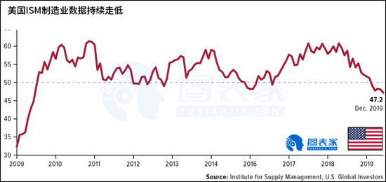 美國12月製造業連續第五個月萎縮,美國供應管理協會(ISM)月度數據觸及逾10年低點。採購經理人指數(PMI)跌至47.2,這是自2009年6月以來的最低水平,全球貿易緊張局勢繼續對美國製造業造成影響。
