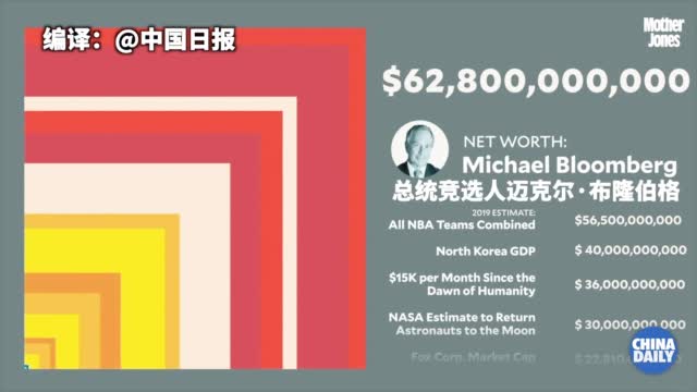 美國大選一般都離不開大量政治捐款的支持,直到遇見了美國億萬富翁邁克爾·布隆伯格。美國紐約市前市長布隆伯格去年11月宣佈加入2020年總統選戰,表示將自掏腰包不要政治捐款。《福布斯》稱,布隆伯格目前的淨資產估計爲640億美元。這甚至超過了NASA預測將宇航員送回月球的成本。想知道美國總統候選人多有錢嗎?看看美媒製作的這條視頻吧。(數據僅供參考)