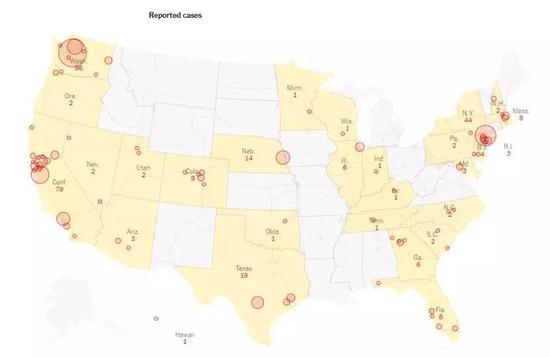 根據紐約時報實時疫情地圖,截至北京時間3月8日零時,美國共有28個州報告了確診病例。其中華盛頓州(86人)、加州(79人)疫情最爲嚴重,因此諸如微軟、蘋果等西海岸科技巨頭也備受衝擊。