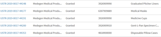 在獲得豁免的產品中,包括Medegen醫用產品公司進口的醫用口罩、隔離防護服,Cardinal Health進口的臨牀檢測手套和Medline Industries要求進口的醫療清潔溼巾。