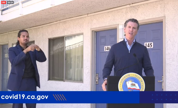 6月30日,加州州长纽森在记者会(加州州长办公室直播图片)