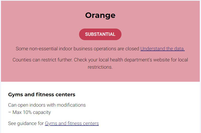 进入红色级别后,县内多个产业可以有限开放室内活动(橙县卫生局推特图片)