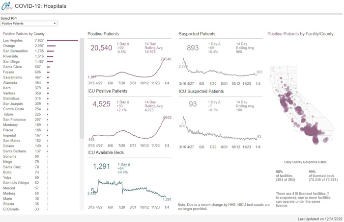 数据截止12月31日,加州新冠疫情一览(加州卫生部疫情数据库图片)