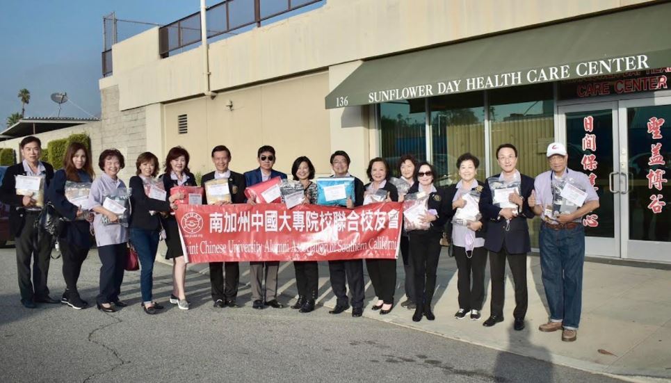 南加州中國大專院校聯合校友會7日舉行年度重陽敬老活動, 包括會長郭文斌及理事長陳蓓蓓在內十多名校友, 前往位於巴沙迪那的非營利組織「聖蓋博谷日間保健中心」 致贈毛毯, 受到院長陳嘉玲女士親自接待. 陳院長首先感謝大專校友會在疫情期間不忘關懷老人, 回饋社會的善舉, 她說很多老人家在院內或在家看電視休息時, 往往不知不覺就睡著了, 很容易受到風寒, 大專校友會致贈的毛毯輕巧保暖, 非常適合老人家在此秋冬交替季節使用.