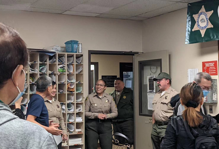 【美新社訊】11/22/21(周一)晩上10:00,「社區安全人人有責」TACF 聯合羅蘭崗華人協會,在洛杉磯縣警察局(LASD)Walnut分局舉行警民互動和寒冬送暖活動,由 Nicole Davis 警官及Denver 警官負責接待。