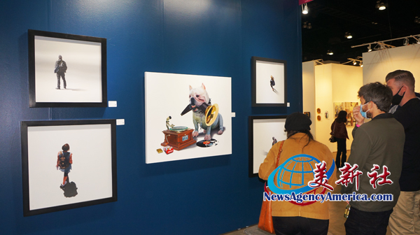來自全球各地與當地藝術家齊聚一堂,以各自的藝術表現形式展示自己的藝術作品。作為引領全球藝術趨勢的風向標,LA ART SHOW 洛杉磯藝術博覽會(簡稱洛杉磯藝術展)已成功舉辦了26屆,是美國本土每年舉辦的規模最大的西部藝術博覽會。今年由於疫情的影響,展覽參展人數明顯比以往更少。參觀者也是寥寥無幾。入場人士也必須出示疫苗卡。