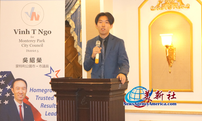 【美新社訊】洛杉磯嘉維聯合學區教委主席 吳紹榮(Vinh T Ngo)於近日宣布競選蒙特利公園市第五區市議員。6月28日晚,於蒙市金都凱旋皇宮舉行選戰造勢啟動大會。
