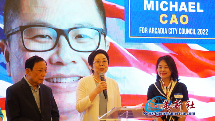 艾尔蒙地市市长 Jessica Ancona,以及美国南加州华人社团联合会主席 陈慧碧(下图)、主席团主席林连连(下下图)等作为社区侨领代表,也发表了支持 高卿醫師(Michael Cao)的热情致词。