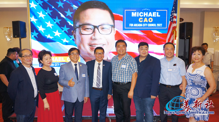 【美新社訊】7月14日晚,競選亞凱迪亞市第五區市議員席位的美以美醫院心髒病專科醫師、曾在伊拉克及阿富汗服役的美國空軍退伍軍人 高卿(Michael Cao) 醫師,於亞凱迪亞市同德明珠再次舉行造勢大會。