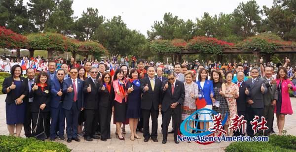 南加州橙縣於10月2日舉行雙十升旗典禮。經文處處長黃敏境, 僑務委員張珮鑾、僑務委員趙韻梅、中華會館主席鄺松齡,中華會館前主席張自豪,前主席梁永泰,世華南加分會會長裴映棋,侯任會長鄭怡薇,加州台灣同鄉聯誼會會長王竹青,前會長謝傳佐,洛杉磯急難救助協會會長劉煥君,越柬遼華人社團代表羅明,知名律師方孝偉等各界代表五百餘人參加了當天的活動。