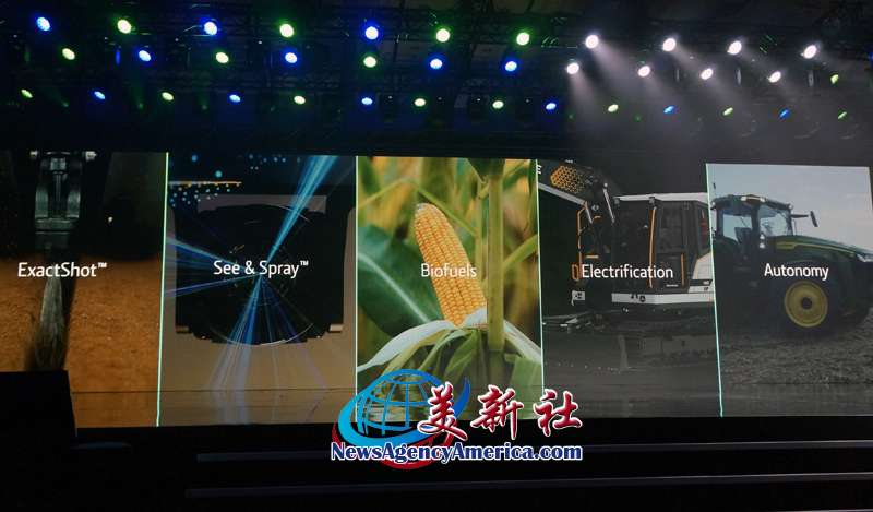 约翰迪尔(John Deere)展示了其在自动播种、生物燃料、电气化、全自动等领域的新技术、新机械、和新成果。