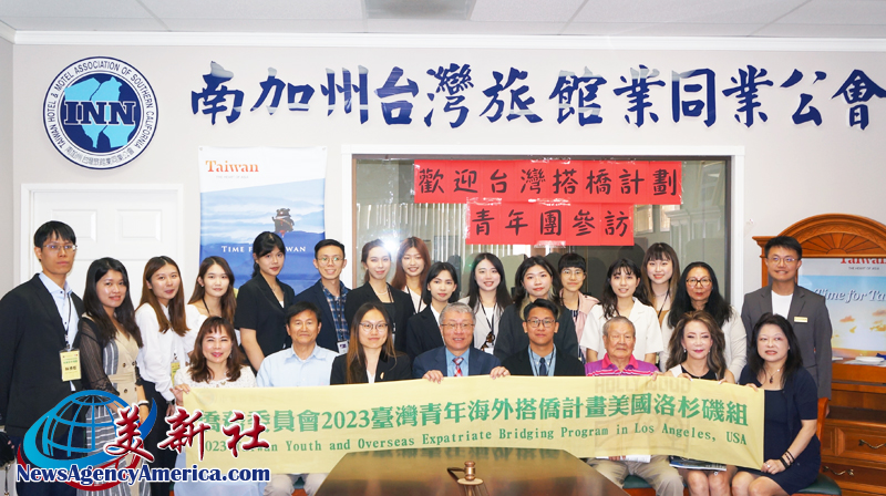 【美新社訊】8月2日週三,2023年「臺灣青年海外搭僑計畫」學員洛杉磯組一行,在洛僑中心劉岱欣副主任的陪同下,繼造訪洛杉磯台美商會之後,也參訪了其兄弟協會--南加州台灣旅館業同業公會。