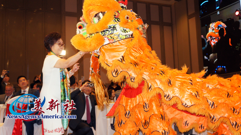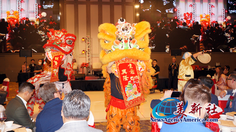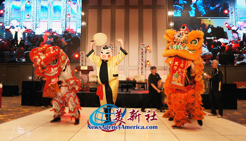 开年盛会由精彩的舞龙舞狮表演开场,美国奥淇宏盛的白金合作伙伴、美国奥淇宏盛费城分公司负责人 Tracy Sun 和美国奥淇宏盛 Marketing Associate Gavin Ng 主持,精彩万分,高潮迭起。