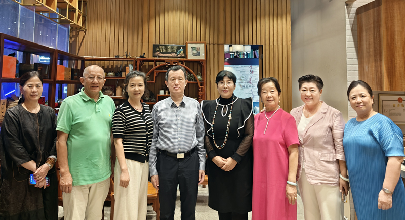 陕西省侨联副主席尚小红女士(左3)、美国南加州华人社团联合会理事长兼美国大西北总商会会长江风年女士(左4)一行侨领与林颖董事长合影留念