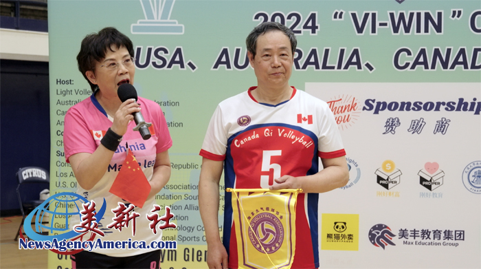加拿大气排球协会副会长 Mary Yang(左)等致辞