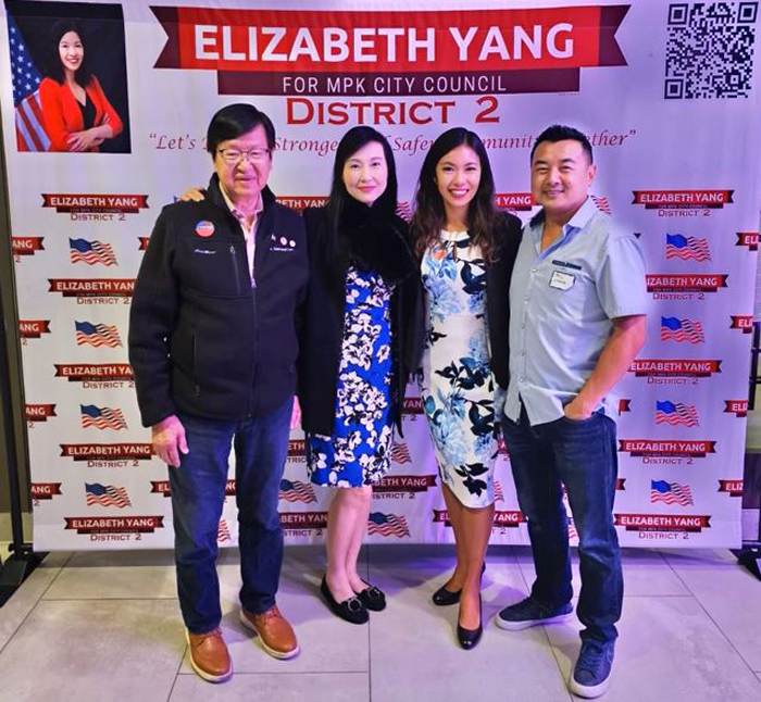楊安立(Elizabeth Yang)夫妇与现任蒙特利公园市议会第二选区市议员饶影凡(Yvonne Yiu)夫妇