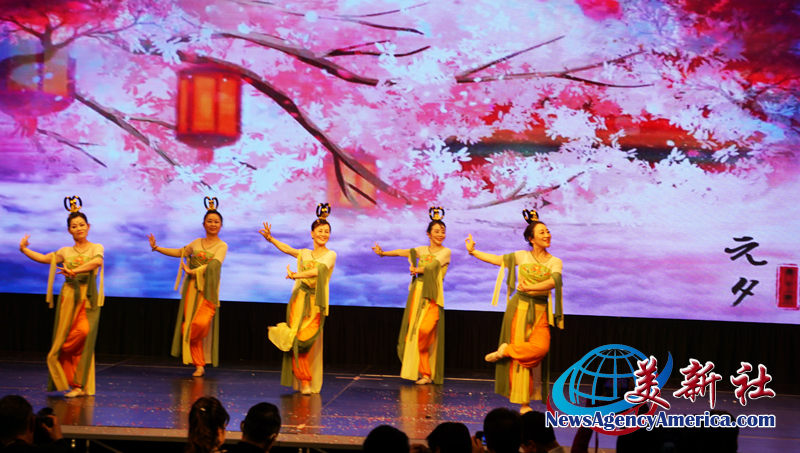 由来自高老师舞蹈艺术中心的 Daviana Li 带来独舞《卜卦》,展现了中国古典舞的精妙韵味。保加利亚女高音歌唱家 Maliana 演唱哈萨克民歌《玛依拉变奏曲》,驾驭嗓音如火纯青。陈慧碧在陈和霞老师的钢琴与 Sho Harvey 的小提琴伴奏下,献唱《在水一方》,并伴随钢琴伴奏跳起拉丁舞,悠扬旋律中,观众感受到经典的隽永魅力。YG Dance Studio的《古韵新姿》将传统与现代舞蹈完美结合,北美高校联盟舞蹈团带来的《元夕》则以细腻优美的舞姿再现了中国古代节日的浪漫景象。