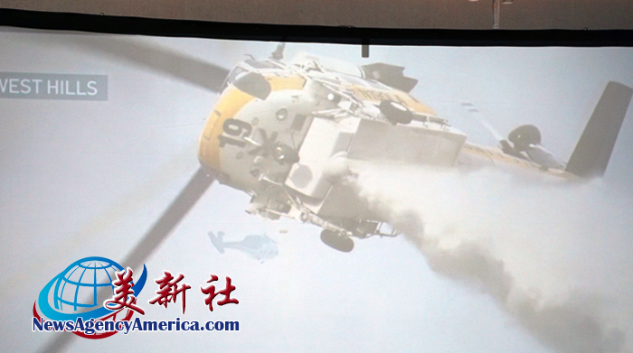 洛杉磯縣消防局飛行隊資深飛行員 Michael Sagely 驾驶灭火飞机灭火