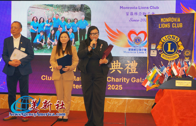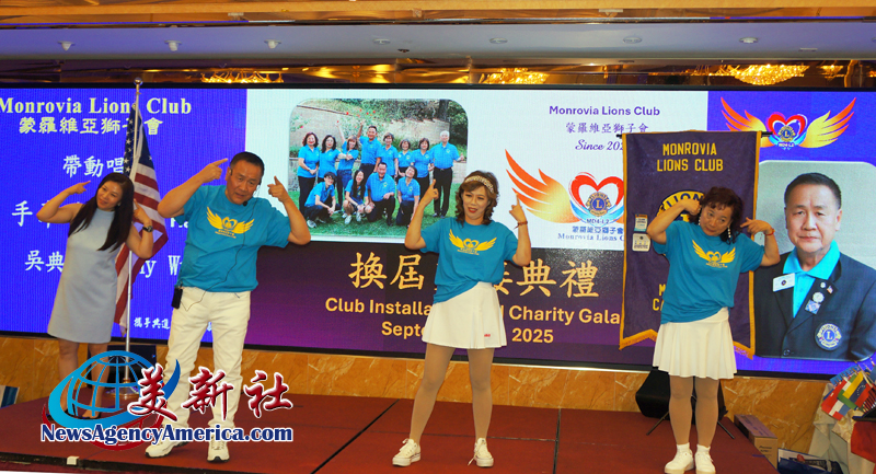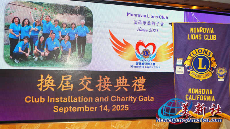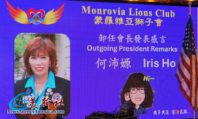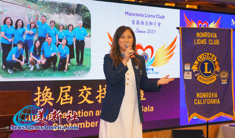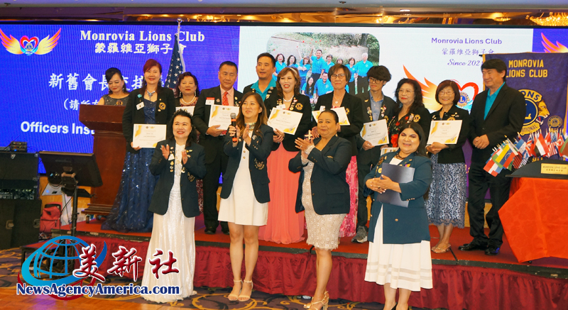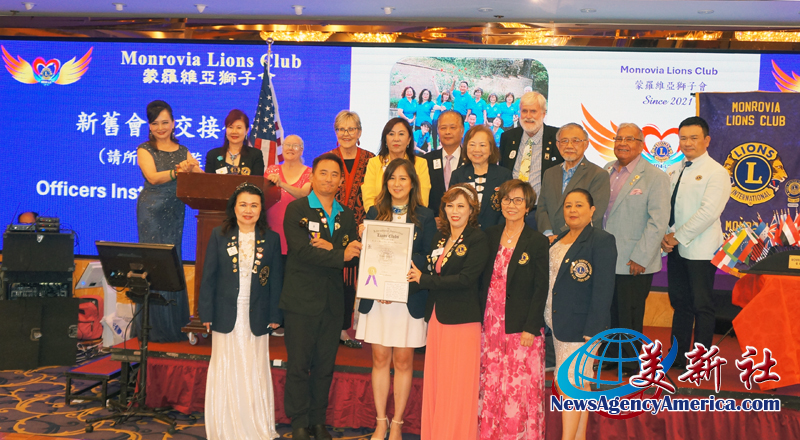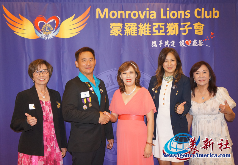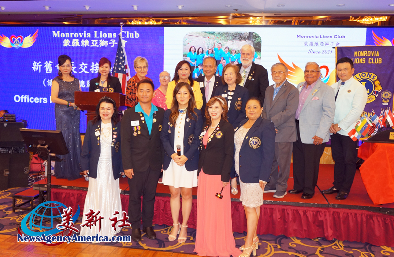 【美新社洛杉磯訊】2025年9月14日,蒙羅維亞獅子會(Monrovia Lions Club)於柔似蜜 888 海珍大酒樓隆重舉行換屆交接典禮及晚宴。在國際獅子會 D4-L2 現任總監裴映棋女士(Angel Peil)的監交下,卸任會長何沛嫄女士(Iris Ho)正式交棒新任會長劉國磊(Gary Liu)。