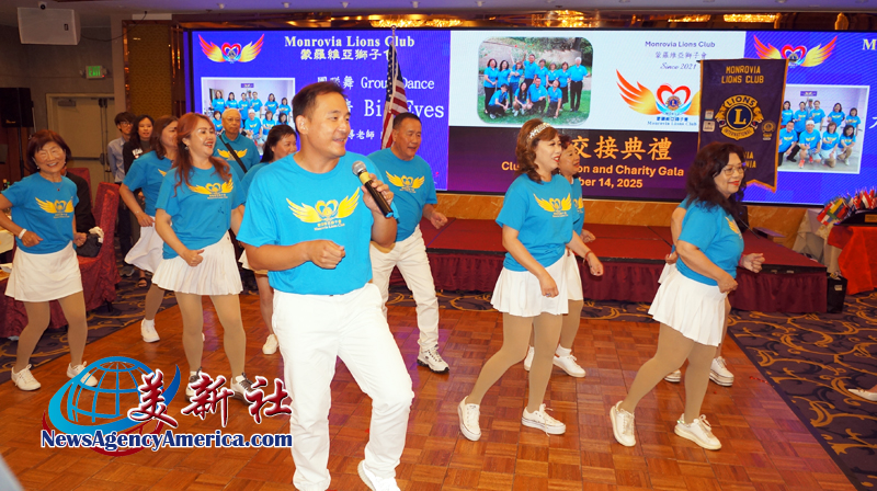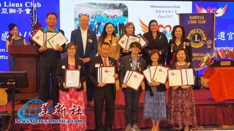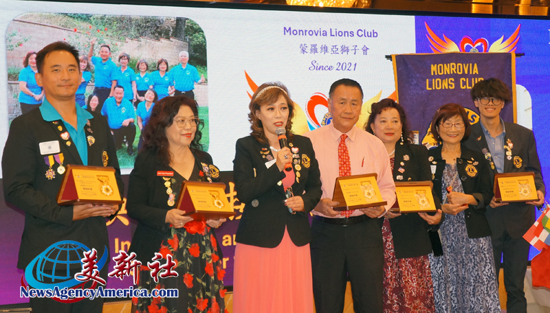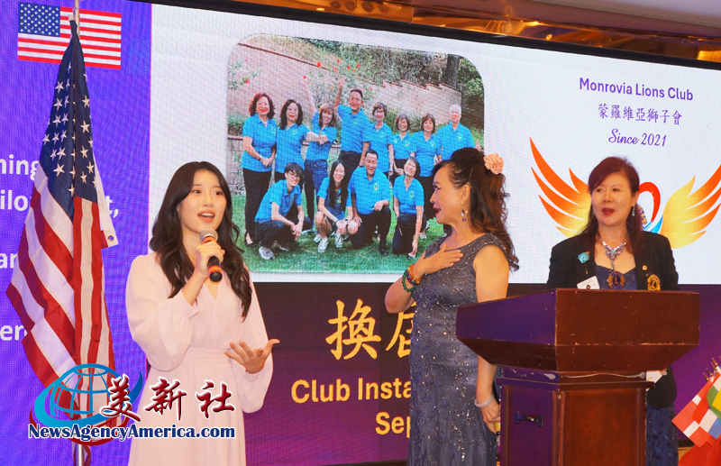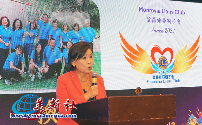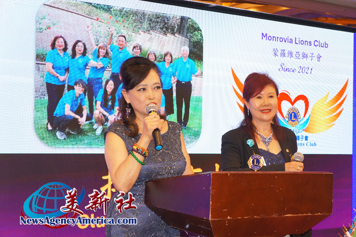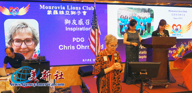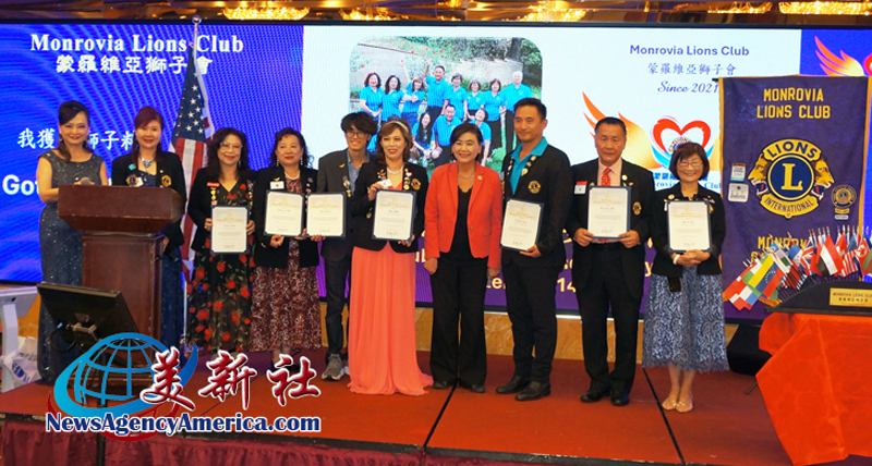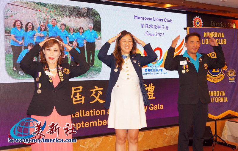 【美新社洛杉磯訊】2025年9月14日,蒙羅維亞獅子會(Monrovia Lions Club)於柔似蜜 888 海珍大酒樓隆重舉行換屆交接典禮及晚宴。在國際獅子會 D4-L2 現任總監裴映棋女士(Angel Peil)的監交下,卸任會長何沛嫄女士(Iris Ho)正式交棒新任會長劉國磊(Gary Liu)。