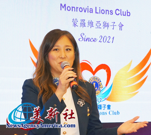 自2025年8月就任國際獅子會 D4-L2 總監的裴映棋女士(Angel Peil)在致辭中表達了參加此次大會的喜悅和激動。同時,她肯定和稱讚蒙羅維亞獅子會在卸任會長何沛嫄女士(Iris Ho)任內,在發展會務、招募會員等方面的突出表現,並強調蒙羅維亞獅子會榮獲了『2024年度獅子會』的稱號。為此,她代表國際獅子會感謝何沛嫄女士和團隊付出心血和汗水。
