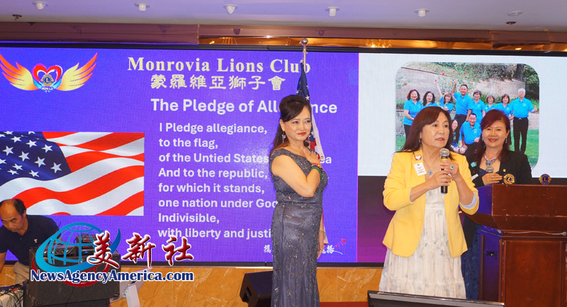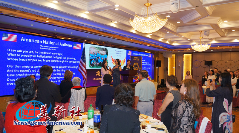 當天,換屆交接典禮及晚宴在效忠誓詞和美國國歌聲中拉開帷幕,PDG 思佳(Scarlett Ku)引領誓詞,Emily Feng 領唱美國國歌。