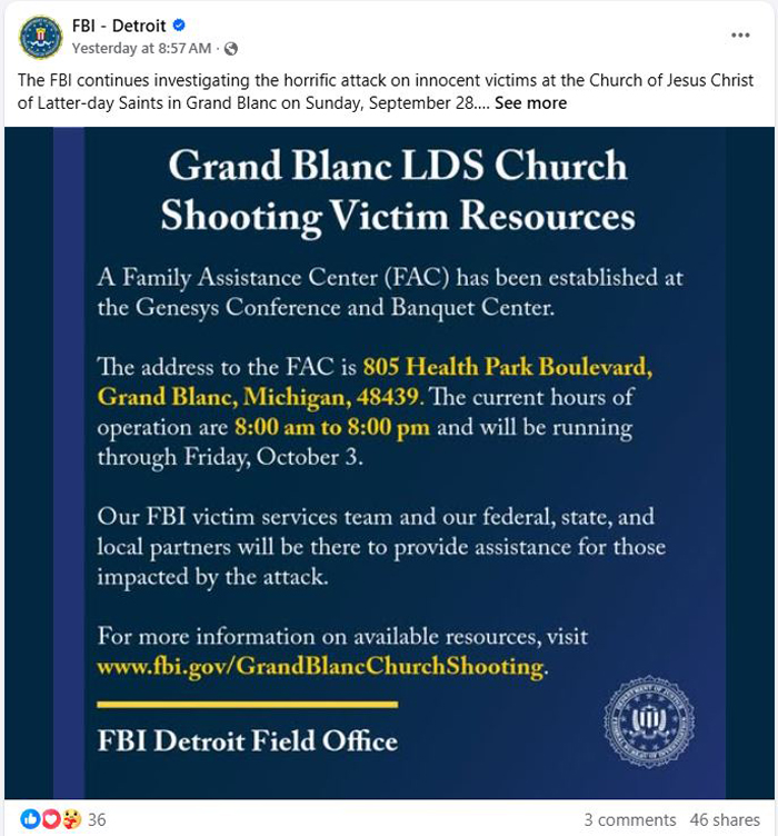 受害者资源信息(联邦调查局 FBI 底特律分局社交媒体图片)