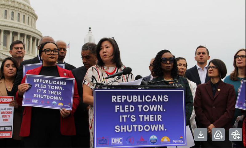 9月30日,国会三大党团(包括国会亚太裔核心联盟 (CAPAC)、国会西班牙裔党团(CHC)和国会黑人党团(CBC))的主席,以及民主党妇女联盟(DWC)、新民主党联盟、国会进步党团(CPC)和国会平等党团(CEC)的领导人举行新闻发布会,强调共和党人正在通过关停政府来捍卫他们对美国医保的攻击。