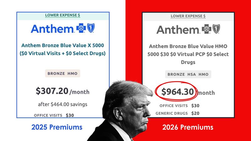 由于特朗普总统最近通过的 HR 1 法案(“大美丽法案”),国会对医疗保健进行了毁灭性的削减,并且未能延长所有平价医疗法案(ACA)参保者的税收抵免,以资助主要惠及亿万富翁的税收减免。如果国会不恢复这些税收抵免,通过“全保加州”(Covered California)计划获得保险的消费者的保费将平均上涨97%,几乎一夜之间翻倍。国会民主党人已同意将这些税收抵免纳入政府资金,但共和党人仍在阻挠这项协议。