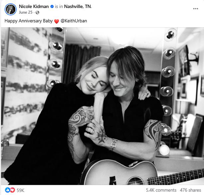 妮可·基德曼(Nicole Kidman)为基思·厄本(Keith Urban)庆生(社交媒体图片)