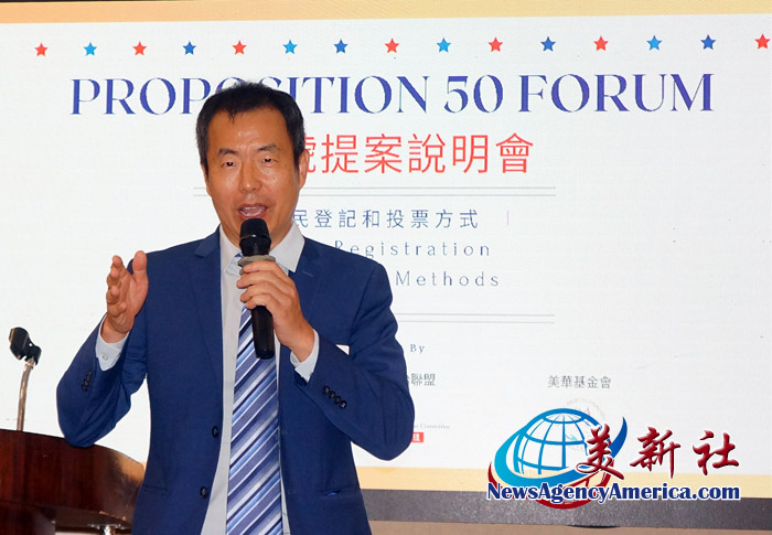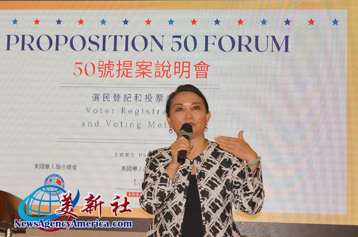 本次论坛特邀蒙特利公园市市长杨安立律师(Elizabeth Yang)与亚凯迪亚市市议员郑博仁律师(Paul P. Cheng)分别担任正反方代表,围绕第50号提案展开深度說明。
