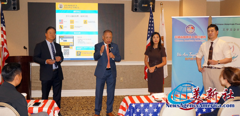 美国华人政治联盟(IAPAC)荣誉主席、圣盖博市市议员丁言愉(Tony Ding)主持了选民教育环节,他详细讲解了选民登记与投票的具体流程,并积极鼓励华人选民踊跃参政,通过手中的选票表达诉求,让主流社会清晰听到华人群体的声音,共同推动社区发展与进步。