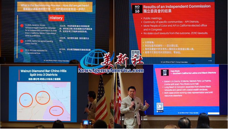 反方代表郑博仁律师则对此提出尖锐批评,认为此举本质上是以党派利益凌驾于选举公正之上。他重申,提案直接违背了加州选民创立独立选区重划委员会的初衷。即杜绝党派干预、确保程序公正。他强调,不能因应对他州的党派操作,而牺牲本州来之不易的独立与公正原则。
